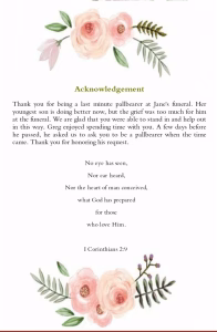 Simply put your loved-one life details, service and obituary details with a cover photo and our system will quickly generate Downloadable & Printable programs for you within clicks!