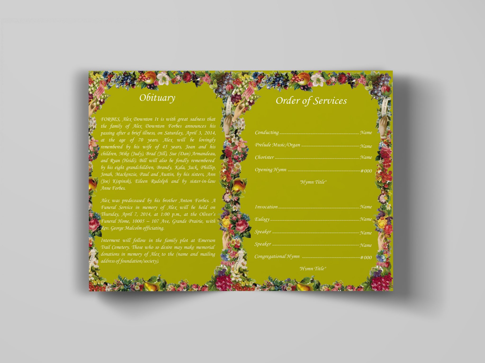 There are actually many other designs and sizes of programs that a funeral director will help you with. You can also shop online with a variety of sites that specialize in helping you to design programs and will have many funeral templates for programs available for you to choose from.