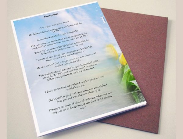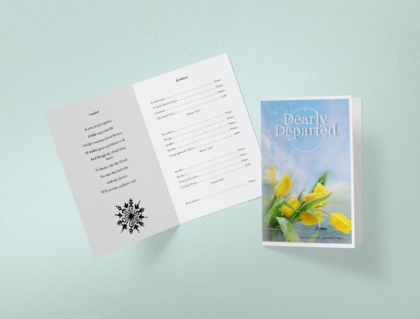 There are actually many other designs and sizes of programs that a funeral director will help you with. You can also shop online with a variety of sites that specialize in helping you to design programs and will have many funeral templates for programs available for you to choose from.