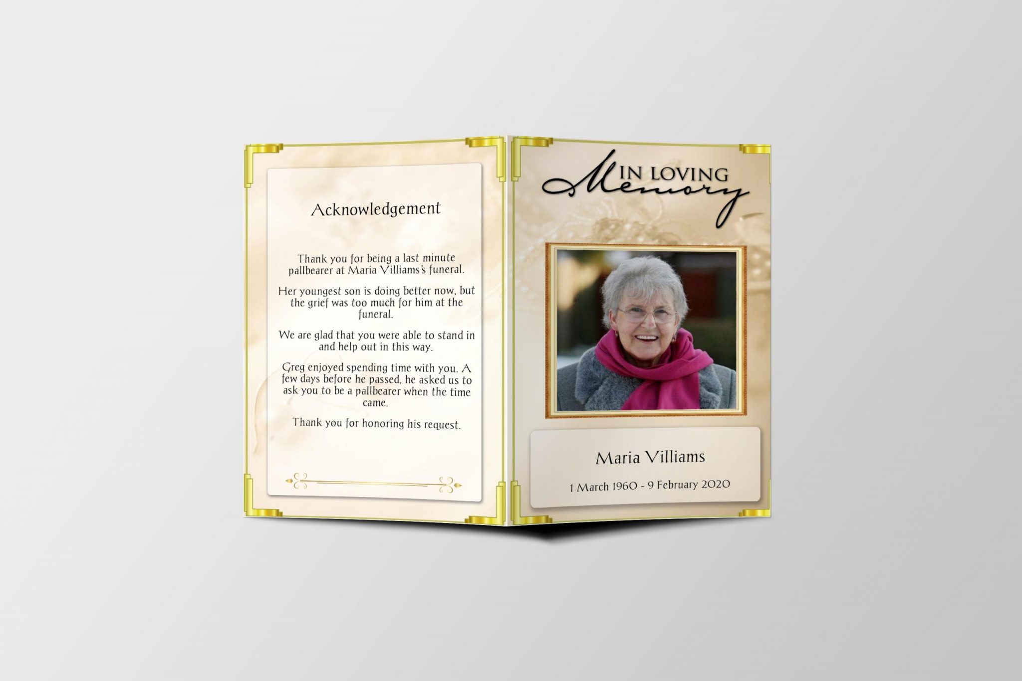 Searching for a Golden Pearls Funeral Program Template that is easy to print has a cutting-edge look? This Non-Religious Funeral Program Template Letter Size is the Perfect decision that is having a measure of 8.5”x 11”.