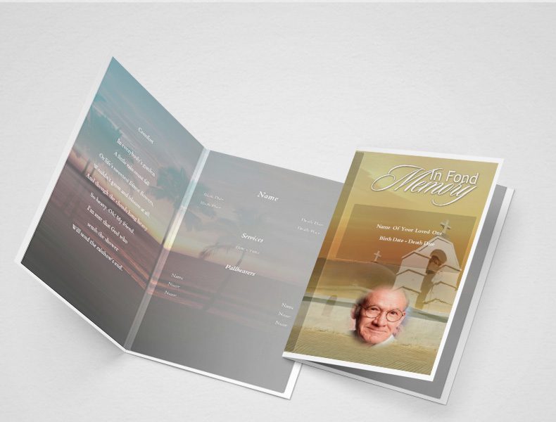There are actually many other designs and sizes of programs that a funeral director will help you with. You can also shop online with a variety of sites that specialize in helping you to design programs and will have many funeral templates for programs available for you to choose from.